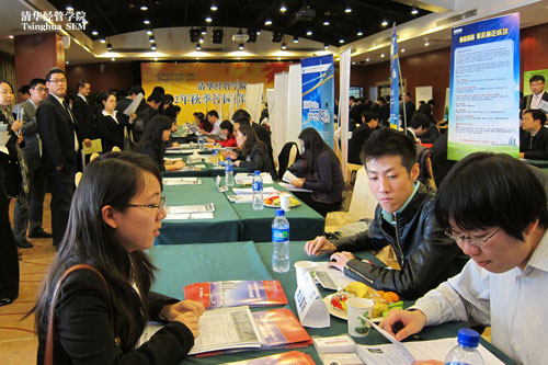 On November 30, Tsinghua SEM Career Fair was held by the Career Development Center (CDC) in Wenjin Hotel. Thirty-eight local and international employers from finance, consulting, manufacturing, TMT, medical & health care industries actively participated in the fair. Over 200 intern and full-time job opportunities were provided for SEM undergraduate, postgraduate and MBA students.