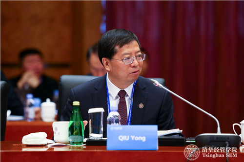 QIU Yong, Vice Chairman of Tsinghua SEM Advisory Board, President of Tsinghua University, made remarks to the development of Tsinghua SEM Advisory Board. Dean BAI Chong-En provided School Update to the Board.