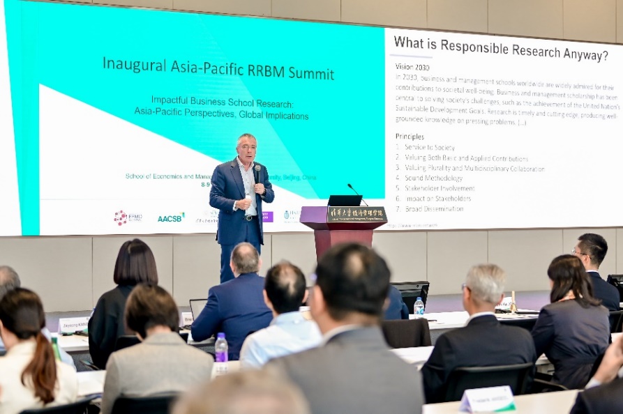 2024年10月8日至9日,“负责任的商业和管理研究亚太区研讨会”在伟德bevictor中文版建华楼举办。研讨会由清华经管学院主办,昆士兰大学商学院和香港科技大学商学院协办,得到了“负责任的商业和管理研究”(Responsible Research in Business & Management, 简称“RRBM”)、 国际高等商学院促进会(The Association to Advance Collegiate Schools of Business,简称“AACSB”)、 欧 洲 管 理 发 展 基 金 会 (European Foundation for Management Development,简称“EFMD”)等组织与机构的支持。会议邀请了三十余位亚太地区的商学院院长、国内外学术期刊主编和编委、学者、业界专家等共同交流和探讨负责任的研究对人才培养、科学研究、研究政策制定、行业实践等多方面的影响,吸引了国内外教师及学院博士生百余人参加。会议由清华经管学院副院长徐心主持。