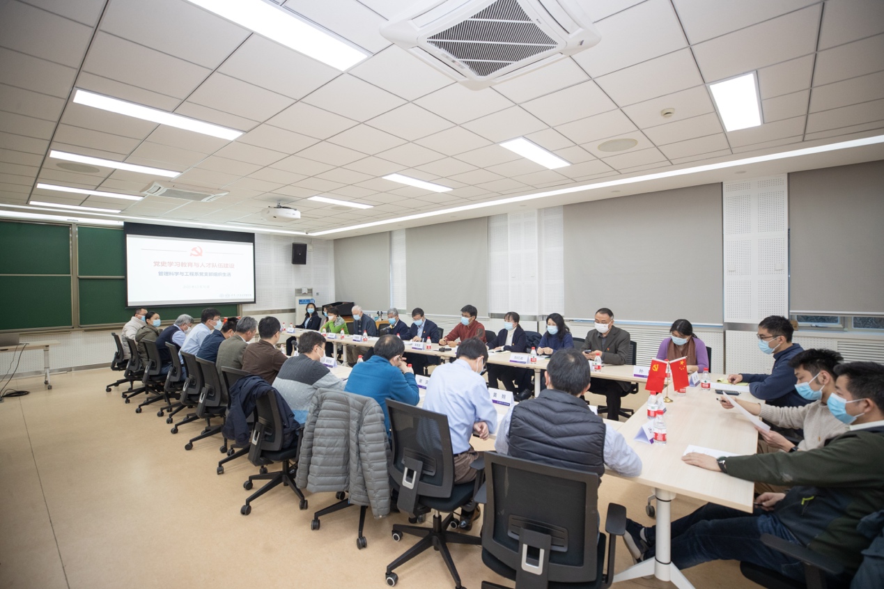 会上,郭迅华介绍了管科支部工作、党史学习教育开展情况、疫情防控与服务中心工作、查摆问题和相应的整改措施与成效。管科系主任、支部委员陈剑介绍了本学科优化学科布局和人才队伍结构、培育和延揽更多优秀人才的工作思考。