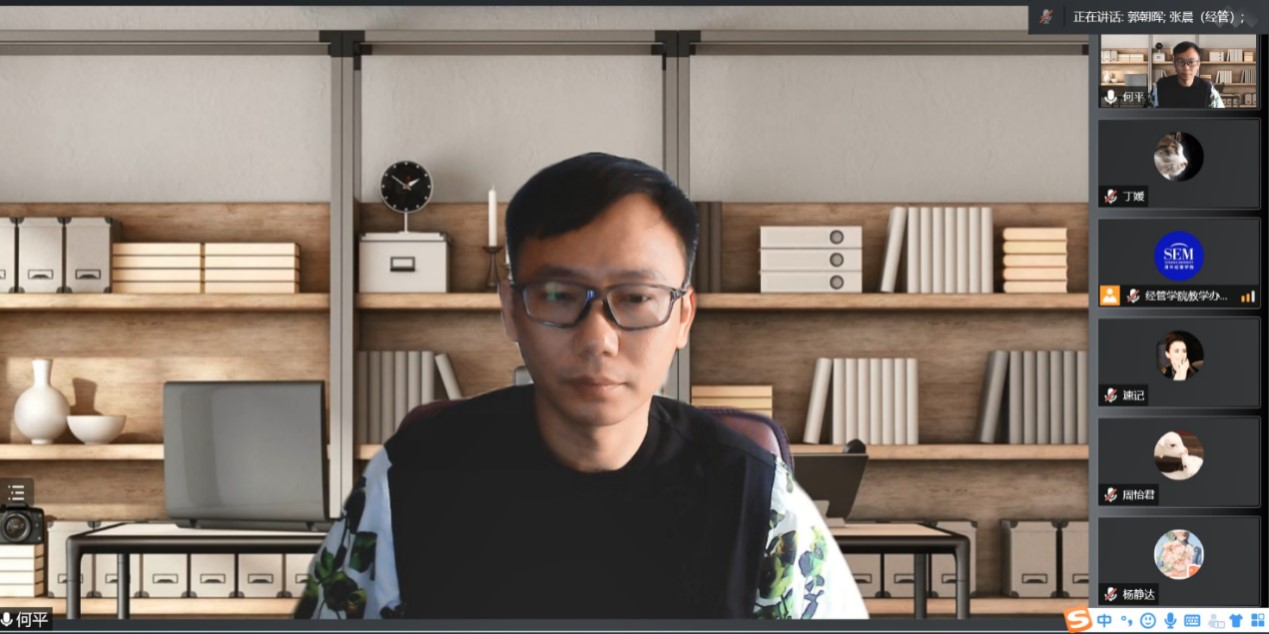 何平介绍了学院近期在疫情防控下的教学工作举措,包括教学办职员座机均进行了呼叫转移,保证及时解答学生教学相关咨询;为同学们的暑期实习提供应急预案;提前准备期末考试和本科毕业答辩的线上方案;为同学们提供在线的图书及信息服务等。院长助理张晨进一步补充说,在教学工作以外,希望班主任老师更多关心同学们的日常生活和身心健康,倾听同学心声,让同学们感受到“老师和同学们在一起”的温暖,并希望老师们积极向学院反映了解到的同学需求。何平与张晨提议班主任老师尽快召开班会,和同学们在线上促膝谈心,协助学院把对同学们的关怀工作覆盖全、做实做深。