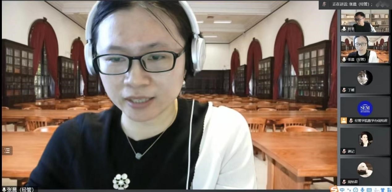 自5月14日起即驻校参与校园疫情防控工作的副院长李纪珍和学生工作事务办公室主任郭朝晖,向班主任老师介绍了与在校同学进行交流和沟通的情况,包括同学们比较关心的问题和诉求。李纪珍传达了学校近期疫情防控工作的精神和要求,以及在落实上级疫情防控要求的同时,学院为努力保障师生工作生活需要所做的努力,也希望老师们理解同学们为配合疫情防控工作所做的贡献。郭朝晖介绍了在校生比较关心的线上上课、校园网速、期末考试、离校返乡、21级学生军训、暑期实践、日常用餐等问题,希望班主任老师在与学生交流沟通的过程中,理解和关注同学们遇到的各种不确定性和压力。李纪珍、郭朝晖也介绍了目前学校及学院已经在开展的关怀同学们的一些措施,例如学校网络中心积极采取措施争取网络环境畅通,食堂免费提供餐盒以及六折提供套餐,学院开放院馆楼宇内学生专属的教室和讨论室提供学习场地保障等,希望班主任老师在了解这些切实的措施外,特别从学业关心、情绪疏导等方面进一步为同学们提供支持。