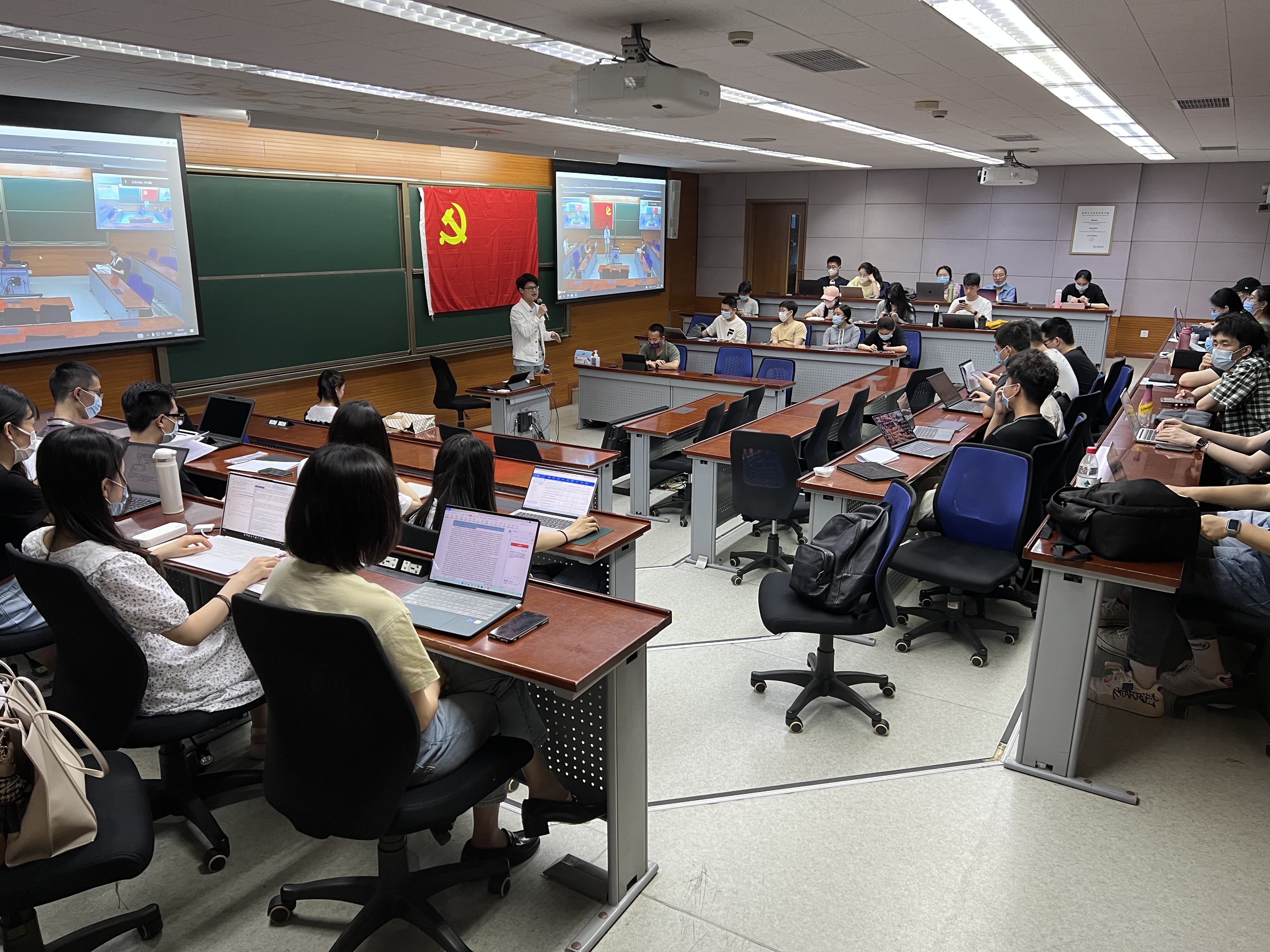 2022年5月20日晚,清华经管学院经博21党支部、团支部和班集体召开疫情防控专题组织生活暨主题班会,传达学校学院关于当前疫情防控决策部署,动员经博21党团班全体成员坚定信心,为打赢清华园疫情防控保卫战作出贡献。支部联点领导、学院党委副书记赵冬青出席并讲话。学院相关研工助理和全体党团员、学生70余人以现场或线上方式参加。会议由经博21党支部组织委员赵婧迪主持。