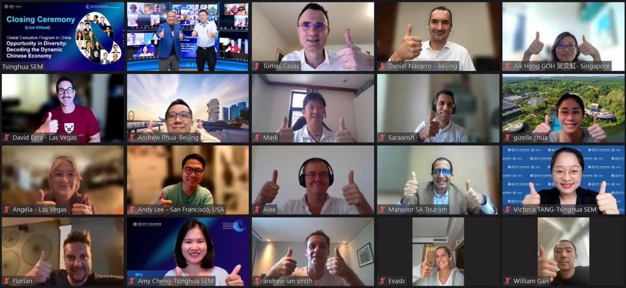 跨洋取道中国,碰撞智慧火花。清华经管学院近期推出全球高管中国智慧课程(以下简称GEPC),解码变革中的中国经济,提供系统化的中国营商课程,吸引了来自世界各地的企业高管。来自中国、美国、法国、西班牙、南非、新加坡、马来西亚等9个国家的首期班学员经过136天的在线学习,于2022年8月21日顺利结业。