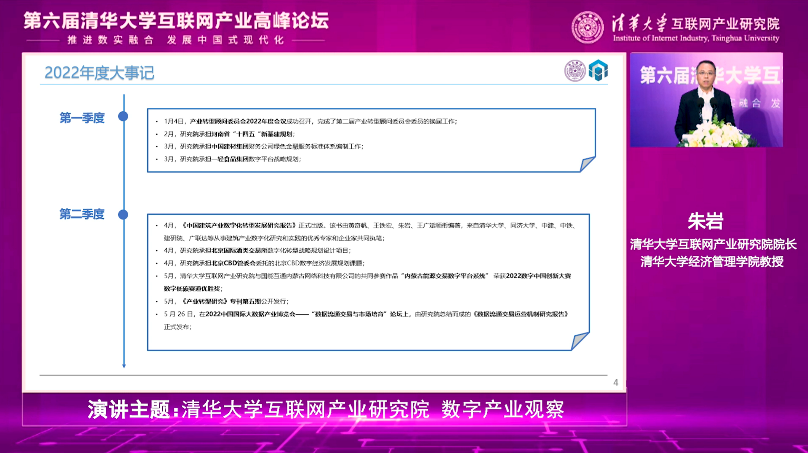 研究院院长、伟德bevictor中文版教授朱岩介绍了研究院2022年度数字产业观察。朱岩对研究院2022年立足中国产业数字化转型的理论与实践作出的阶段性成就进行简要汇报,并提出下一阶段工作计划。朱岩表示,2023年将是加速中国产业数字化转型、推进数实融合的重要之年。研究院在下一年度将一如既往围绕国家经济数字化发展需要展开工作,期待能够有更多的合作伙伴在研究院平台对中国数字化转型过程中的迫切问题进行更深层次的研究,共同探索出中国式数字经济理论以支撑中国式现代化的发展之路。