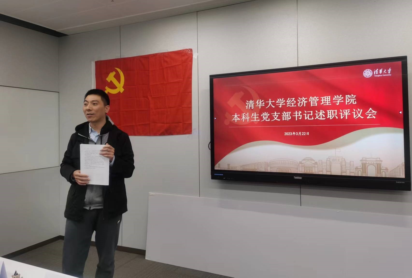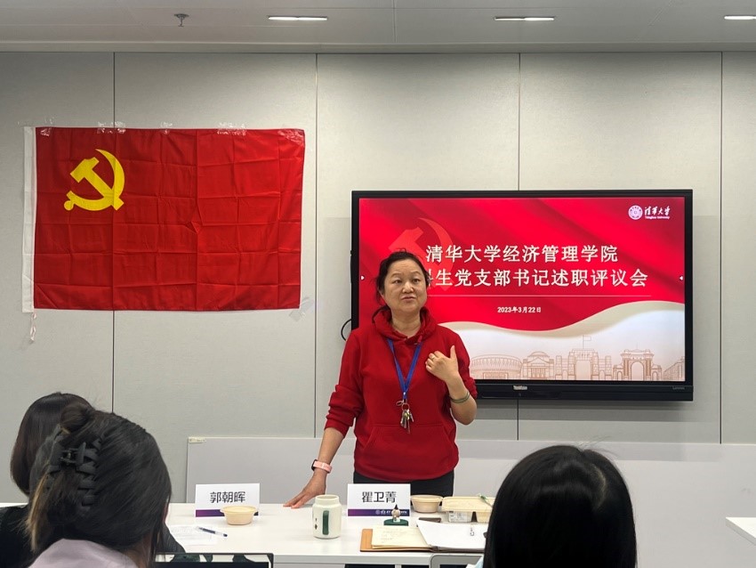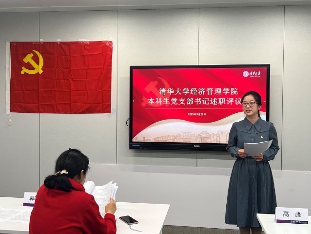2023年3月22日,清华经管学院2022年度本科生党支部书记述职评议会举行。学院党委副书记高峰、党办主任瞿卫菁、党委学生组组长孔奕淳、学生事务办主任郭朝晖等出席述职评议会并担任评委。学院本科生党支部全体党支书、本科带班辅导员代表以及来自党班团的学生骨干代表20余人一同参加。会议由党建辅导员马洪彪主持。