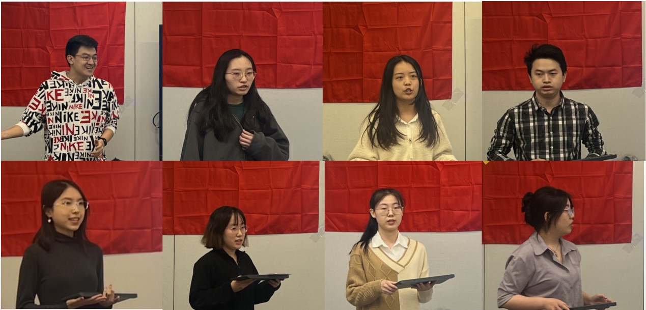 本科生党支部书记述职(从上到下、从左到右依次为:新生党支部书记金会智、经本第一党支部书记林子田、经本第三党支部书记李沐晨、经本第四党支部书记谌彭州、经本第五党支部书记詹雨涵、经本第六党支部书记路畅、经本第其党支部书记王洁、经本第八党支部书记詹冯冰苑)