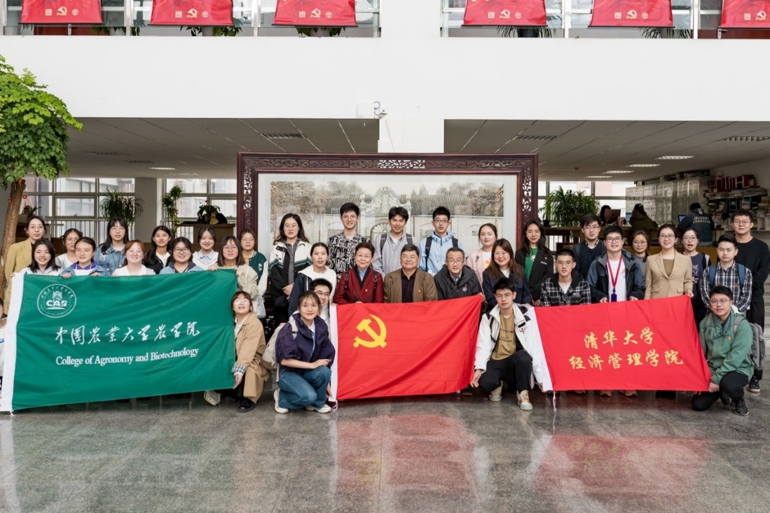 清华经管学院党委副书记钟笑寒,经济系教授、党支部书记武康平,经济系教授刘玲玲,经济系博士后赵妤婕、蒋玉杰,学院党委学生工作组组长孔奕淳、经本第四党支部书记谌彭州,以及中国农业大学农学院党委副书记兼副院长胡云,作物生理与栽培学系教授王志敏,作物生理与栽培学系副教授黄收兵、温媛,学生工作办公室主任、团委书记王婷,科研秘书兼任本科生第一党支部书记张晨阳,以及两校两院30余名党支部学生代表参加活动。