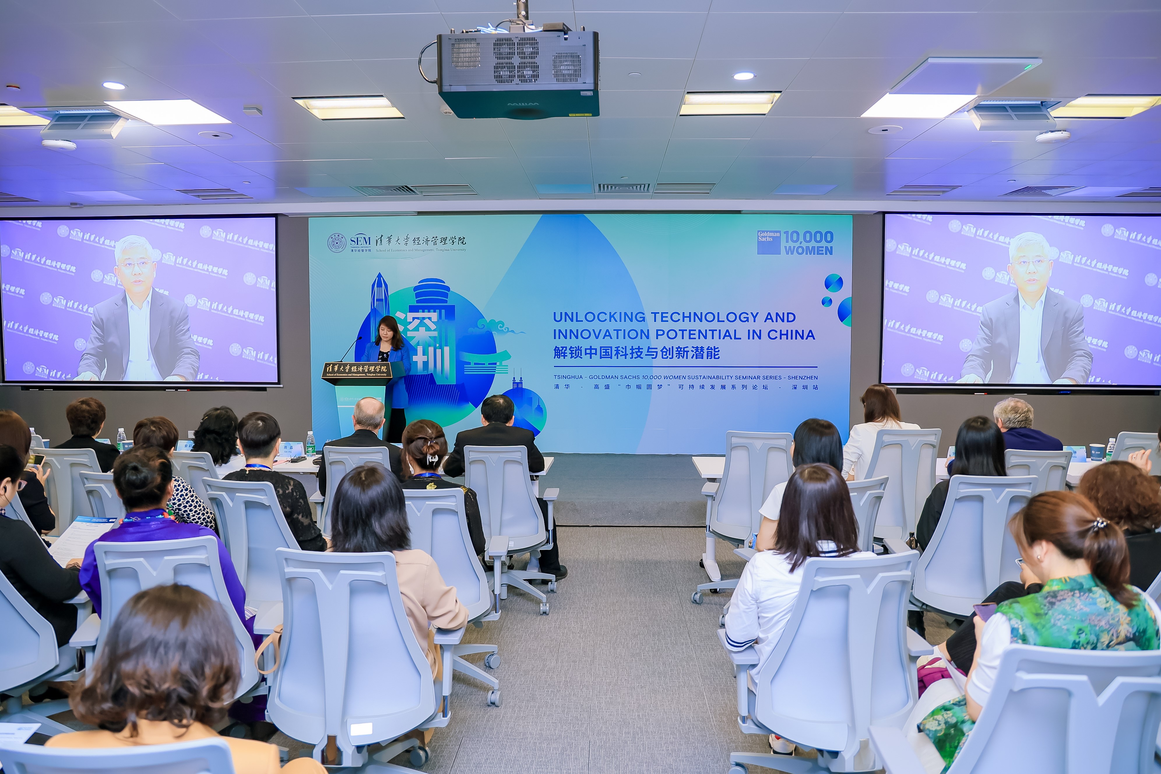 2023年4月21日,清华-高盛“巾帼圆梦”可持续发展系列论坛首站——解锁中国科技与创新潜能活动在伟德bevictor中文版经济管理深圳研究院举行。与会嘉宾与来自全国各地的百名“巾帼圆梦“学员共同见证了“巾帼圆梦”万名女性创业助学计划2023年可持续增长路线图第一板块发布,共同探讨未来十年中国女性创业者在技术与创新方面的潜在机遇和挑战,以及可持续增长相关话题。