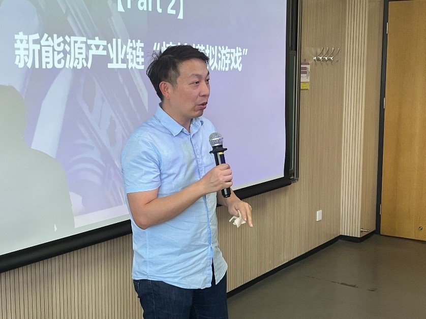 黄张凯发言指出,经管学院与未央书院合作举办学生活动具有重要意义。他表示,万千变化的市场需求相互关联,随着市场不断迭代,新能源汽车领域也在不断更新。他以英伟达GPU原本只是为了更好地渲染游戏,现在发展成话题热度最高的ChatGPT做类比,表示今天的一场模拟游戏,很可能促成未来新能源行业的一次变革。黄张凯鼓励同学们全面学习,不局限于固有的就业方向,要奔赴更大的舞台,推动中国新产业发展。