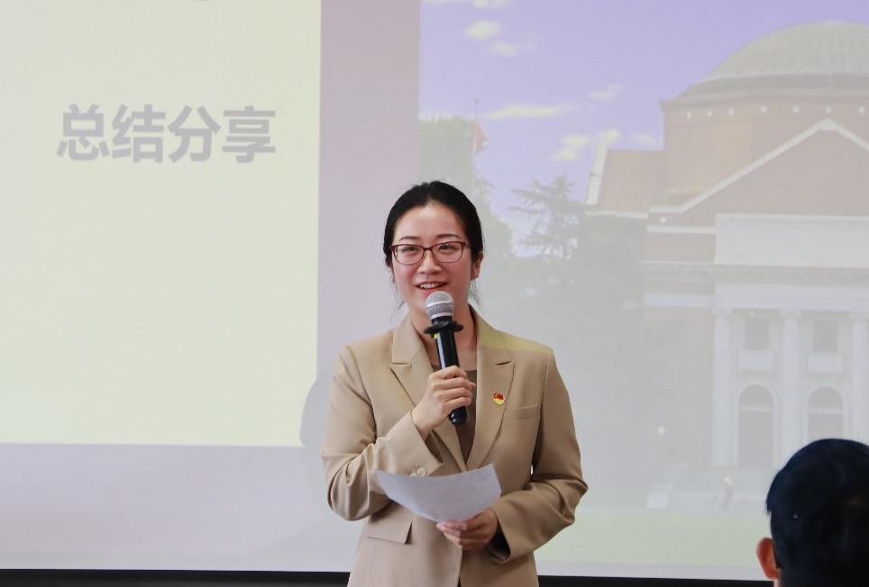 余潇潇在致辞中表示,同学们学习习近平新时代中国特色社会主义思想和党的二十大精神,首先要学习了解新时代十年党和国家事业取得的历史性成就和发生的历史性变革,学习体悟新时代十年的伟大变革是在习近平新时代中国特色社会主义思想科学指引下全党全国各族人民团结奋斗取得的。余潇潇鼓励同学们坚持学思用贯通、知信行统一,结合专业、结合实践,跨院系、跨专业、跨年级联合开展党团班活动,从不同学科、不同视角、不同思维模式,去理解党的二十大精神背后所蕴含的深刻含义。余潇潇表示,本次联合主题党团日,既选择了很有意义的主题,也采用了多种创新的形式,有利于同学们从多元视角理解新能源产业的高质量发展,有利于提升同学们认识和理解国家大局的能力,相信同学们在学科交叉和碰撞中会擦出新的思维火花,期待大家在交流互动和分享研讨中有所收获、有所成长。