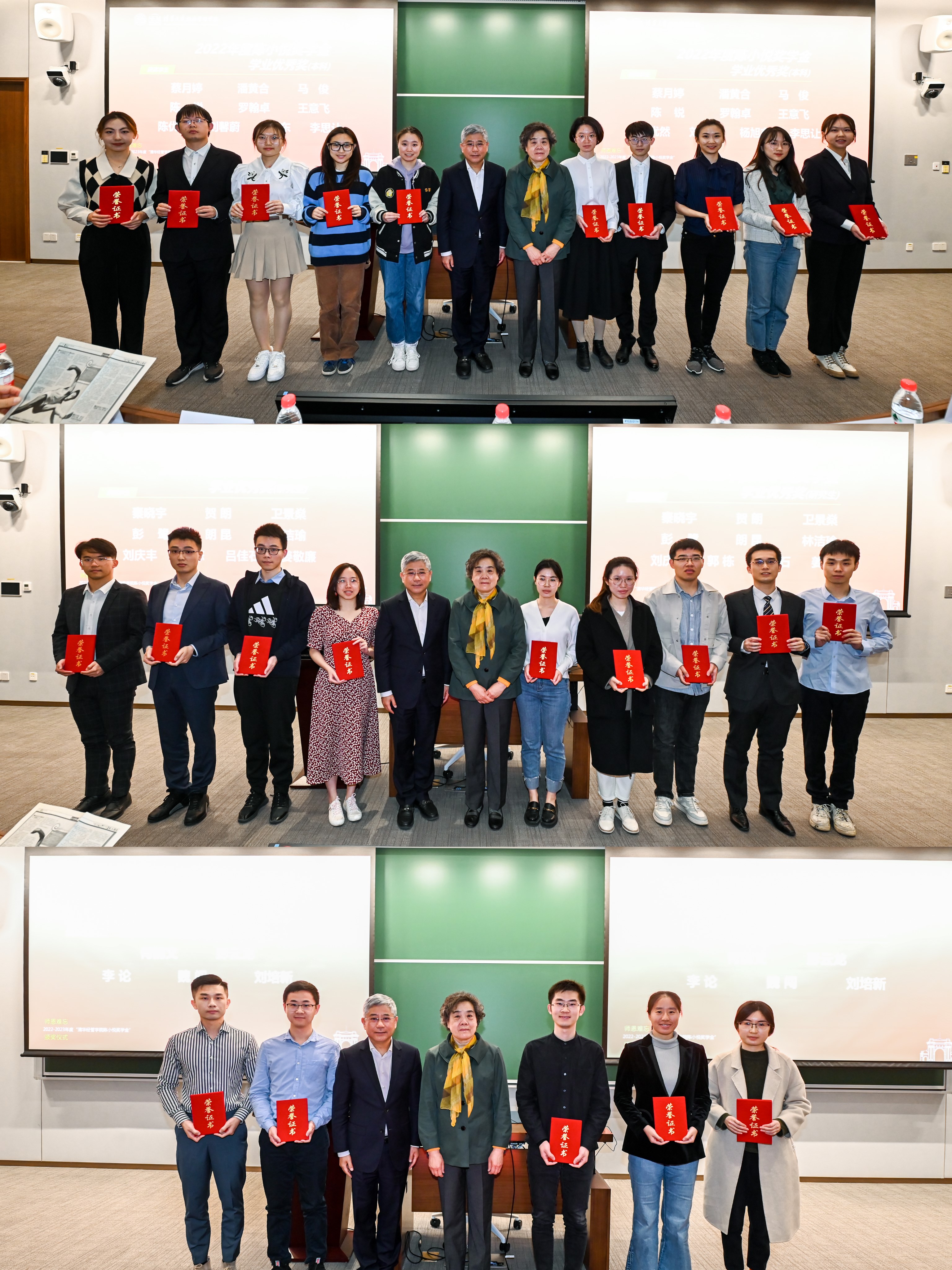 郭凤梅女士和白重恩院长为获奖学生颁发证书