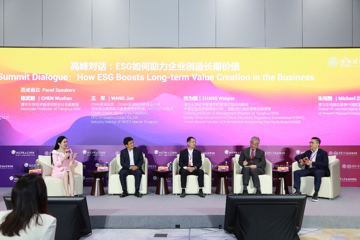 围绕ESG主题的高峰对话由安永大中华区金融服务可持续发展服务合伙人、安永大中华区ESG管理办公室主任李菁主持。学院会计系副教授陈武朝,华友钴业高级副总裁兼首席财务官王军和张为国等嘉宾从研究角度到实践角度,从学术端到企业端,深度探讨了ESG问题。他们认为,ESG第一是合规管理,第二是价值增值活动,企业按照ESG披露的方向去做,追求的是未来的价值。