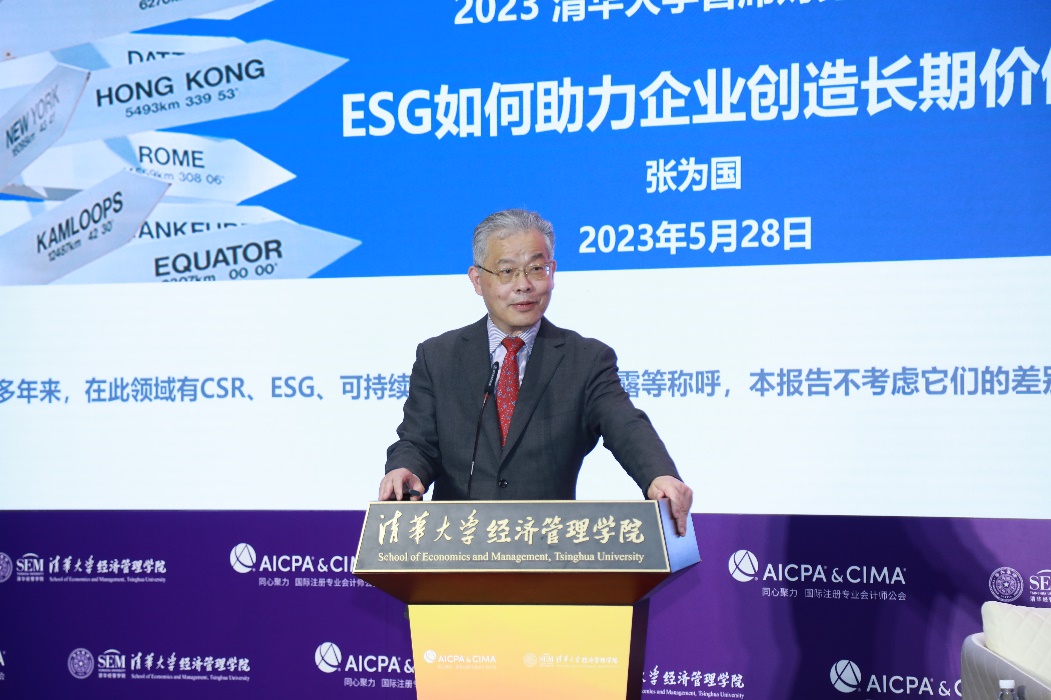 最后,学院管理实践访问教授、中国证监会原首席会计师、国际会计准则理事会原理事张为国以“ESG如何助力企业创造长期价值”为主题发表演讲。他从六个方面阐述了ESG理念在实现企业社会价值发展中的重要性和意义,指出ESG已成为一种热潮。我们不应仅将其视为舶来品,也不应将其视为纯粹的披露问题,而应从主观上充分意识到它是中国经济发展和转型之必须,也是国家治国理念的充分体现,是关系着企业和社会能否可持续发展的具有战略意义的大事。