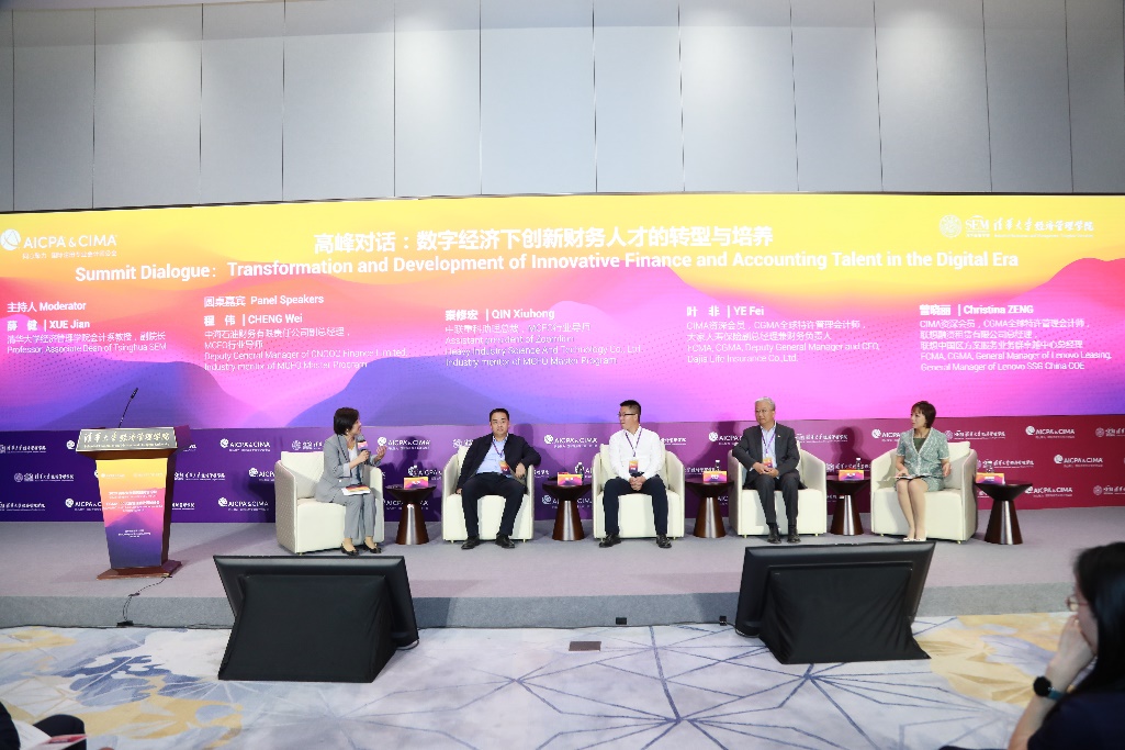 第二场高峰对话由学院会计系教授、副院长薛健主持。中海石油财务有限责任公司副总经理程伟,中联重科助理总裁秦修宏,大家人寿保险副总经理兼财务负责人叶非,以及联想融资租赁有限公司总经理、联想中国区方案服务业务群卓越中心总经理曾晓丽围绕“创新财务人才的转型和培养”展开交流,他们认为,数字化转型除了财务管理还需要关注其他业务生态的发展,财务工作者是数据的管理者和集大成者,人工智能无法全部取代其工作特性和功能。
