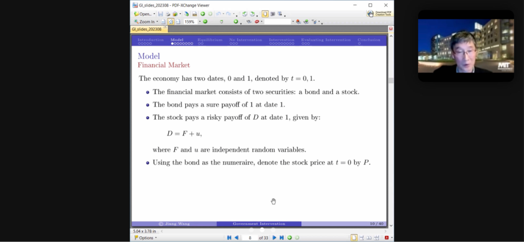 麻省理工学院斯隆管理学院瑞穗金融集团讲席教授、上海交通大学上海高级金融学院学术委员会主席、CFRN主编王江以“Government Intervention in the Financial Market”(政府对金融市场的干预)为主题做了主旨演讲。王江针对近年来各国政府更多直接干预金融市场的行为构建经济框架,分析在不同市场条件与政府使用不同信息等多种情况下,何种程度的政府干预可以提升投资者福利。他还提出,使用市场价值来衡量政府干预效率可能并不全面,未来可以进一步研究市场干预如何影响金融市场的资产定价、公司行为、经济增长与投资者福利。
