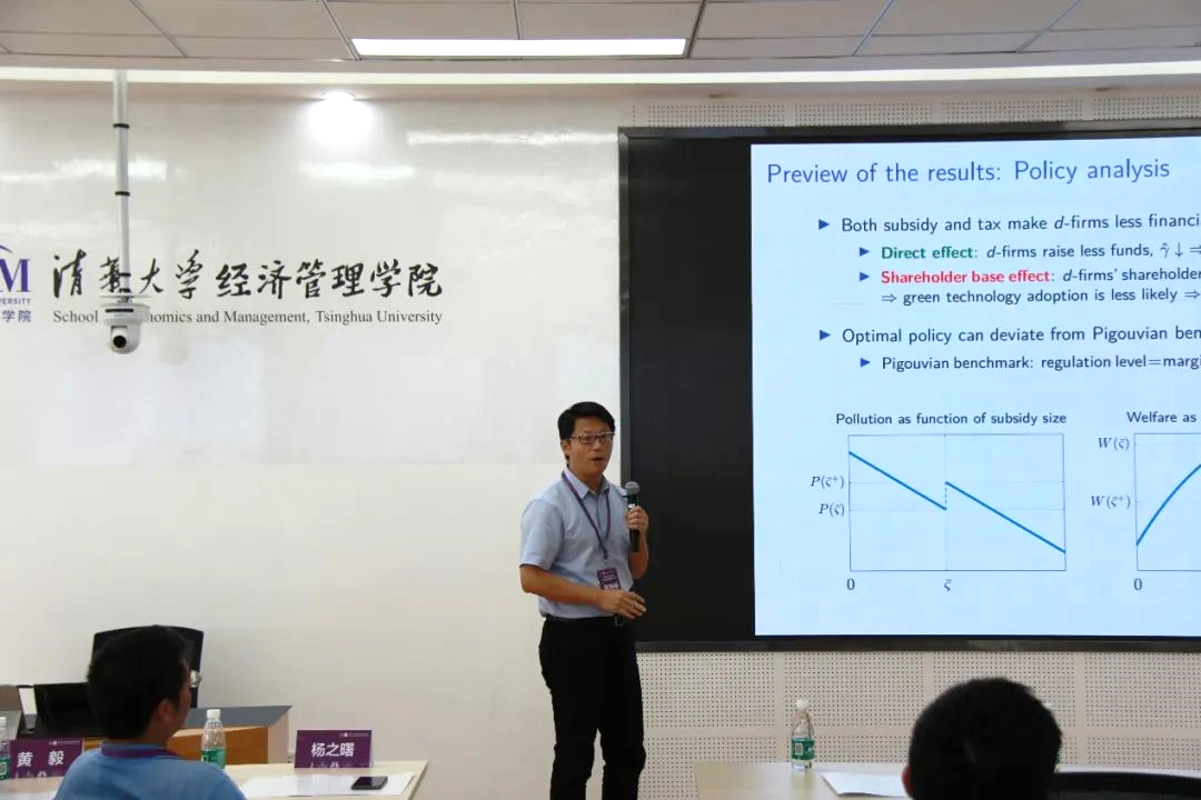 香港大学经管学院金融学副教授黄诗杨带来论文“Sustainable Finance under Regulation”(可持续金融监管)的主旨演讲。论文以投资者对环境法规的态度与绿色金融时代的最优监管方案作为切入点,讨论了没有环保政策,以及政府补贴与污染税两种不同政策下市场的最优解,结果发现对社会负责任的投资与政府干预是应对气候变化的有效方法。常规环保政策重塑了投资者的投资组合并打击了重污染企业,但也让那些企业失去了向可持续发展转变的想法。论文指出后续可以从投资者规模、政府承诺以及更具体的量化分析来继续改进。
