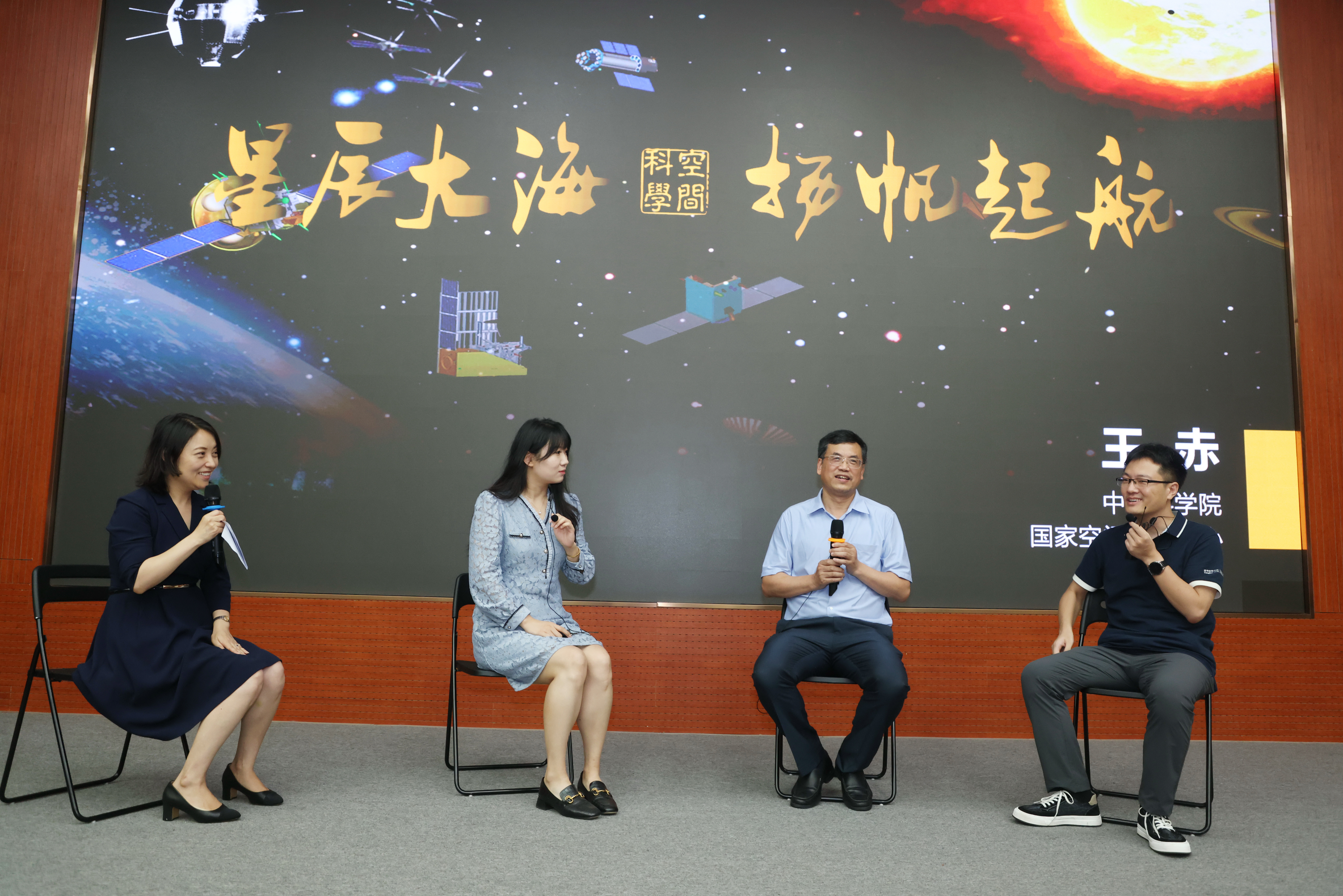 报告之后,经管学院2021级GMBA学生许童童、2020级MBA学生郑阳、迟巍与王赤院士展开圆桌讨论。在讨论中,学生代表们积极发言。针对同学代表提出的“人类已经在地球上有着稳定的发展,为什么还要去研究空间科学?”王赤院士回应说,随着经济社会的进步,我们应该积极参与到空间科学的探索中,为全人类的科学进步作出贡献。他还强调了空间科学的发展将为空间技术的进步带来巨大的推动力。同学代表还提出了关于空间卫星通讯与地面通讯之间的关系的问题。王赤院士指出,这两者在可见的未来时间里将存在互补关系,并各自具有优缺点。