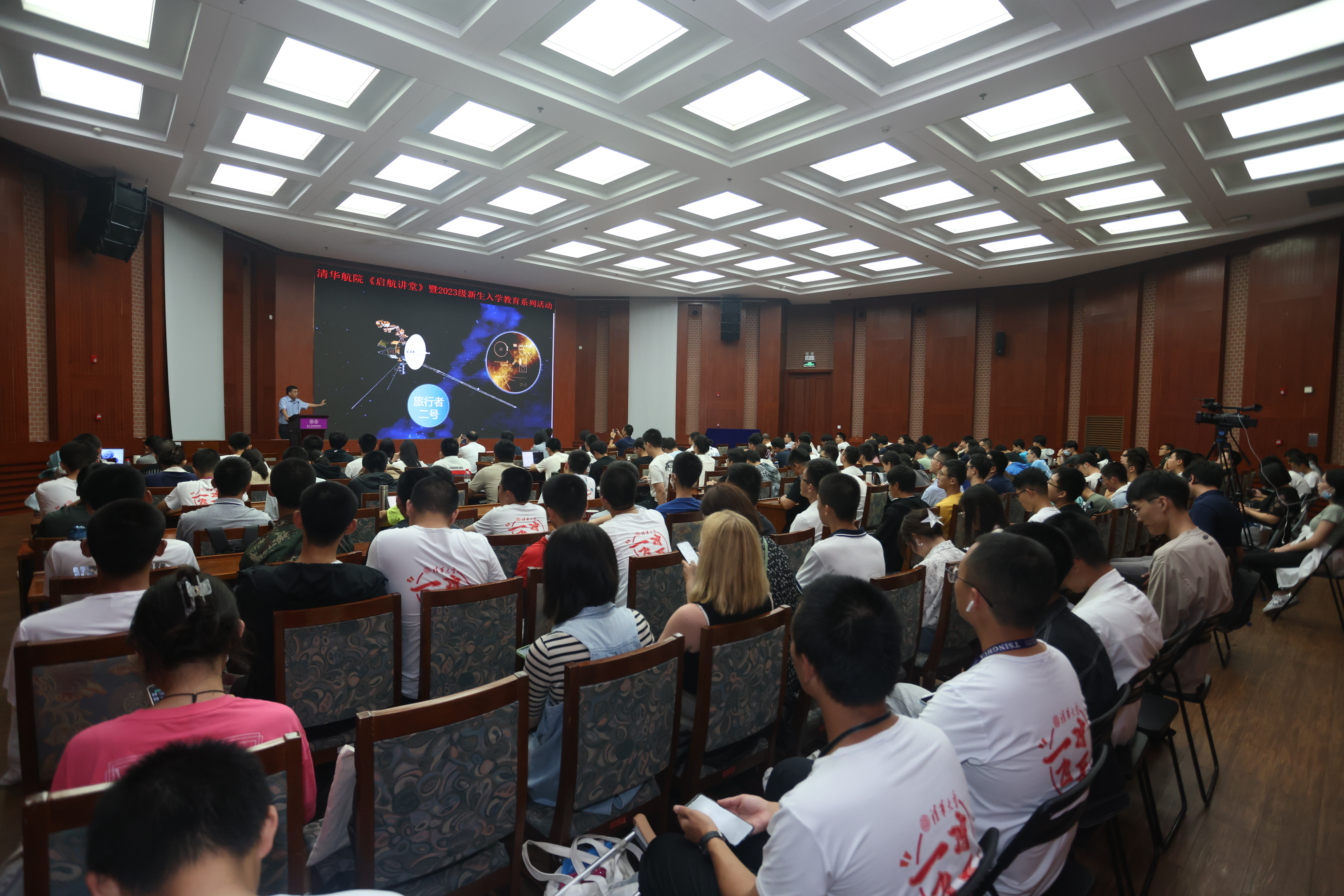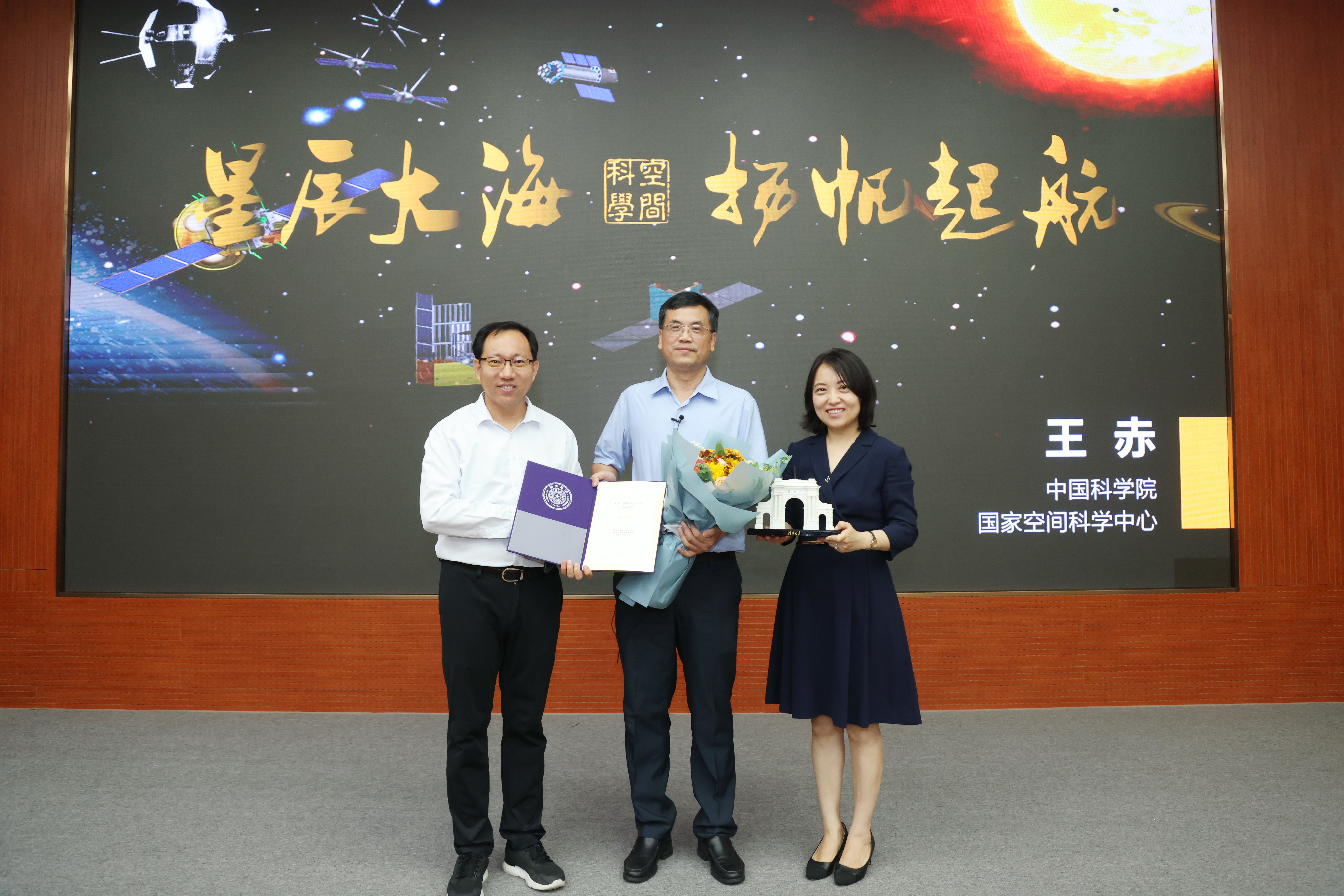 活动伊始,王赤院士以“星辰大海 扬帆起航”为主题,为在场的学生带来了一场内容丰富和深刻的主题报告。他从儿时的梦想开始,讲述了他的求学历程和科学探索之路,深入探讨了空间科学的最前沿和未来的发展趋势,为同学们展开了一幅波澜壮阔的前沿科学画卷。