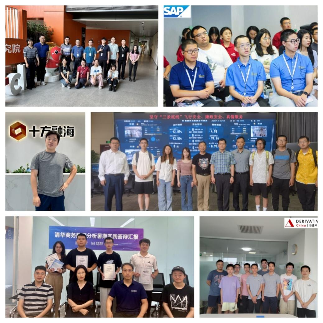 学生在企业开展暑期实习实践(从左至右、从上至下:联想集团、SAP、十方融海、首都机场、深维智信、衍盛资产)