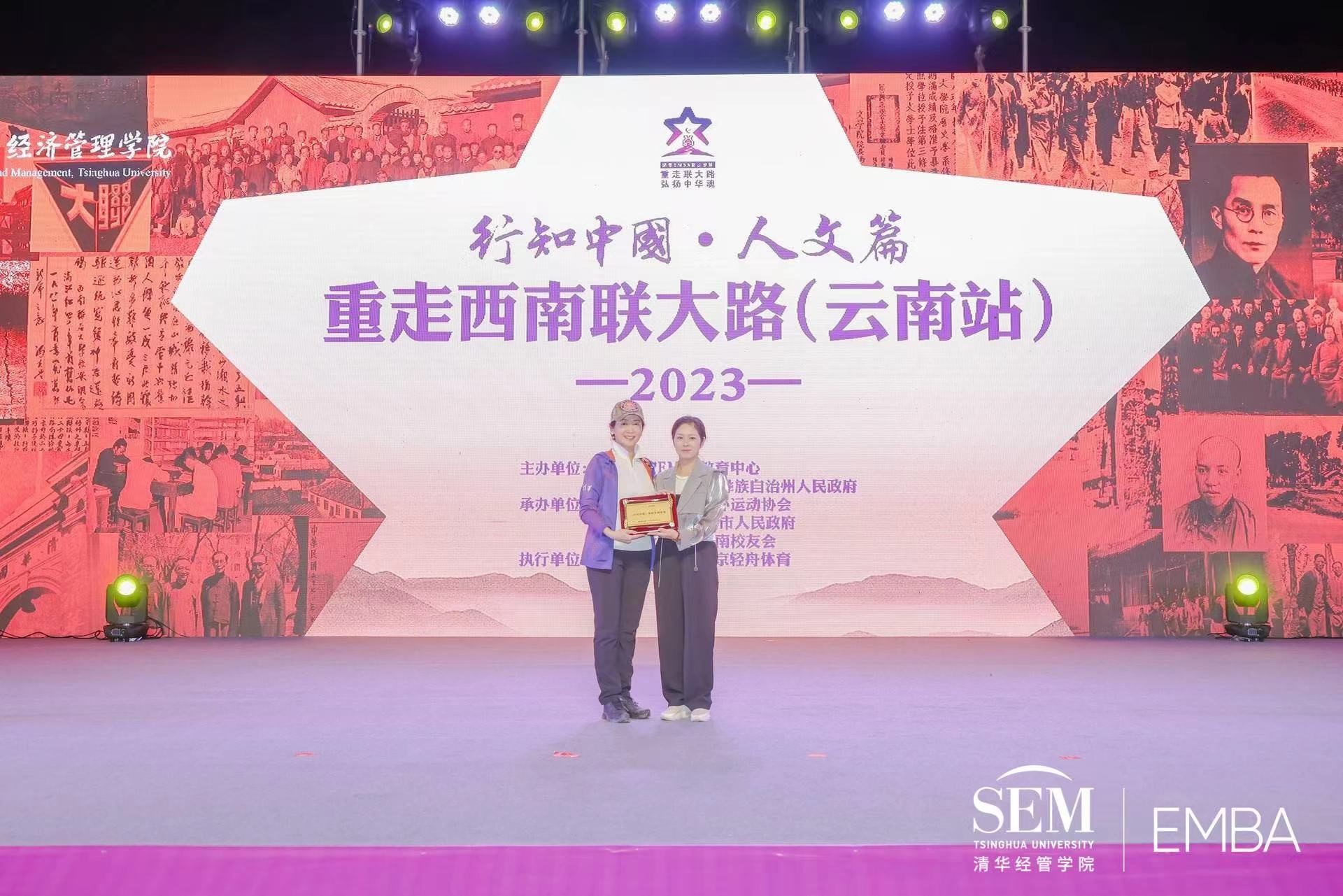 开营仪式上,蒙自市人民政府副市长太星南从贾莉手中接过“行知中国课程实践基地”牌匾,成为蒙自与清华经管学院双方共同努力和成就的见证。