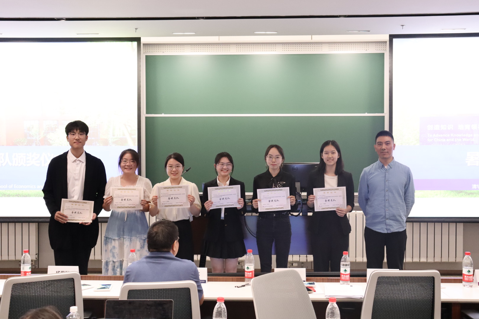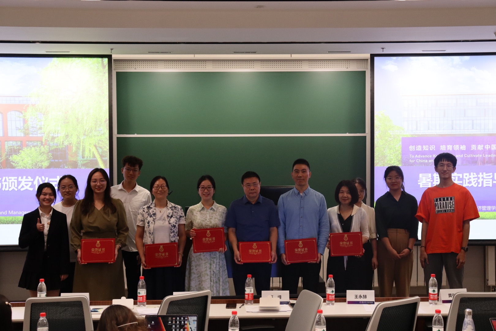 经过各嘉宾评分与观众投票,综合实践材料函评结果,总结会对暑期实践中表现优秀的各支队进行了表彰。老师们分别为获奖支队颁奖并合影留念。