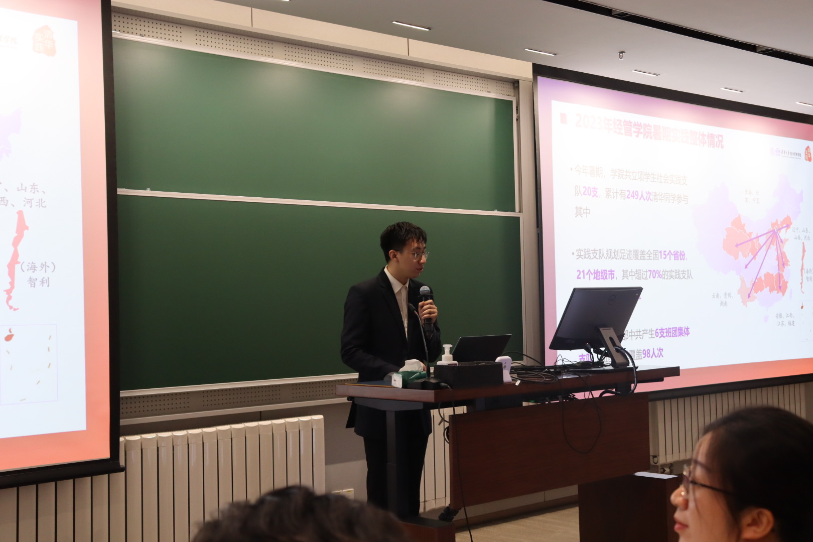 跋涉千山万水,洞明世事人情。2023年9月21日,清华经管学院2023年暑期实践总结答辩会举行。活动回顾了20支社会实践支队“学思践悟二十大,青春聚力现代化”的暑期实践概况,并进行了各支队答辩展示,评选出学院暑期社会实践传薪、有为、风采、求知4项单项奖,最佳人气奖及综合金、银、铜奖。伟德bevictor中文版党委统战部副部长南彬,清华经管学院党委副书记高峰、创新创业与战略系教授杨德林、金融系副教授黄张凯等,以及实践各支队同学百余人参加活动。总结会由学院团委李卓航、许明慧主持。