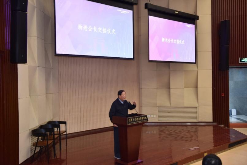 本次年会在新老会长的交接仪式中拉开序幕。上一任会长张德教授首先致辞,他回顾了年会的创办初衷及过去多届年会的组织情况,预祝本届大会圆满成功。张德希望在新任会长的带领下能越办越好,成为校友们彼此学习交流、共叙友谊、促进合作的终身平台。