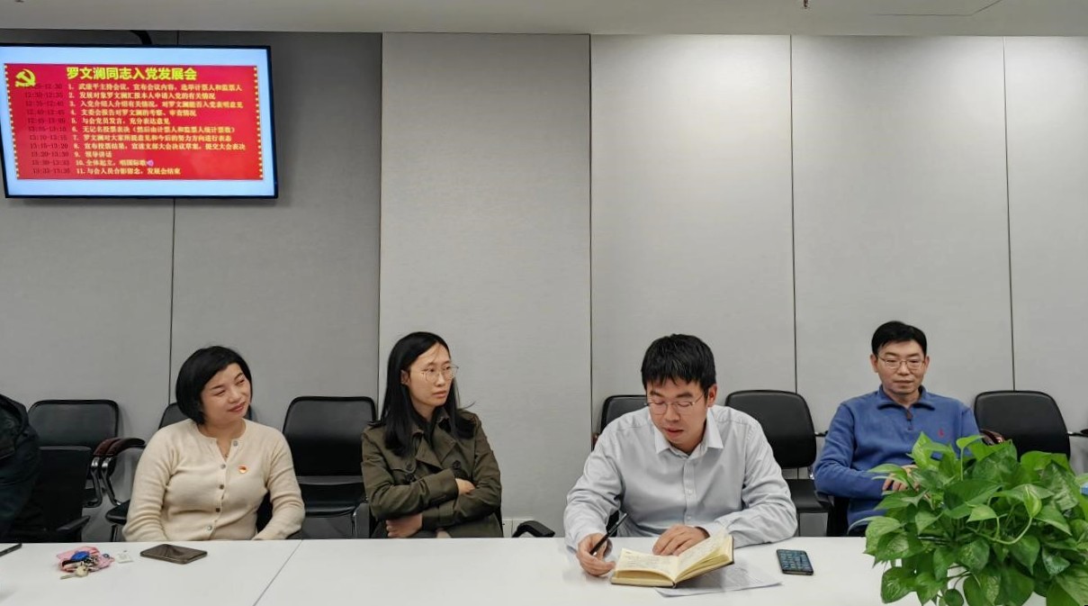 武康平、潘文卿作为入党介绍人分别介绍了罗文澜同志的培养考察情况,并一致认为罗文澜同志具备成为共产党员的条件,同意罗文澜同志加入中国共产党。经济系党支部组织委员刘庆代表支委会报告了对罗文澜同志的考察和审查情况。支部成员就发展罗文澜同志加入党组织发表了各自的意见和建议,大家充分肯定了罗文澜同志的入党信念以及在教学、科研工作中的成绩。经无记名投票表决,一致同意接收罗文澜同志为中共预备党员。罗文澜同志对大家所提意见和今后的努力方向表态,他表示,自己仍存在很多不足,未来他将重点关注国家经济发展的关键领域,努力为国家经济发展提供更具针对性和实效性的政策建议。同时还将更加深入地学习党的理论和方针政策,积极参与社会服务和公共事务,以实际行动践行坚定信念。