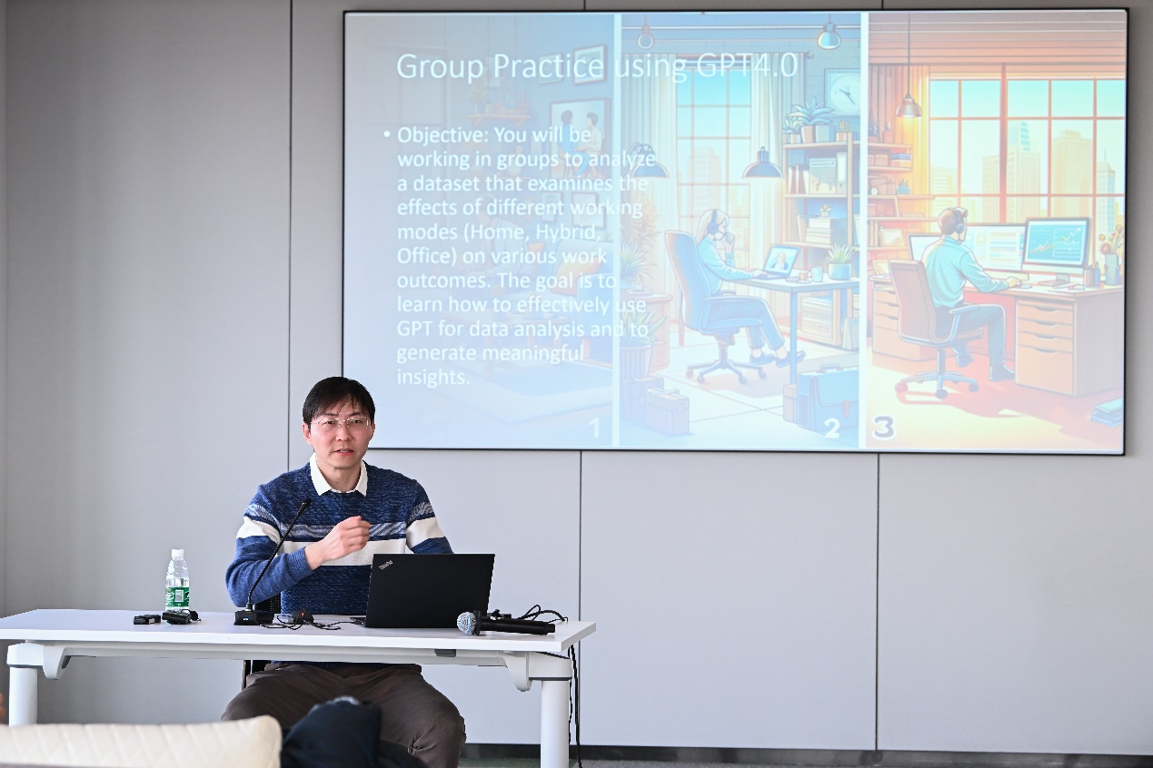 李宁以“人工智能在教学中的应用”为题,分享教学过程中融合人工智能的相关探索。他以一门基于“数据驱动的组织管理”理念的核心课程为例,分享了人工智能在教学全流程中的应用。李宁提出,以ChatGPT为代表的生成式人工智能主要有两方面的作用:一是为老师教学工作赋能,拓宽教学工具箱和教学方式;二是为学生赋能,在一些有挑战、研究导向、强调创新的课程中发挥很大作用。举例来说,这门强调“数据驱动的组织管理”的课程是在企业数字化转型之后通过对数据有效的分析,从中找到管理的洞见,帮助管理者进行决策,因而也对学生的概念性能力和数理分析能力提出较高要求。生成式人工智能的出现,降低了数据分析的门槛,不同背景的学生掌握这项技能的可行性获得极大提高,在市场上的人才竞争力增强。李宁表示,人工智能在教学前可以协助教师梳理教学内容、准备材料、制定评分标准,提高备课效率,有利于教学设计和逻辑的优化打磨。他以案例的重新开发、统计工具关键词梳理、知识点讲解优化等几个教学实例,分析了人工智能对教学方式的赋能作用;在教学中,人工智能可以协助学生搭建整体框架、掌握背后的底层逻辑,运用工具完成复杂的分析,激发学生对培养能力目标的再思考,实现更高要求的学习,同时与人工智能之间的互动可以将课堂上被动接收知识变为主动学习,按照教师提供的关键词进一步自主探索,实现对知识点深入把握。李宁表示,对人工智能评估学生作业应持谨慎态度,但依据目前对人工智能评估部分创造性任务的科学性、准确性的研究结果,未来很有可能实现相对短小的任务由老师和人工智能双评打分,在评分更加公平的同时也让成绩更有区分度。