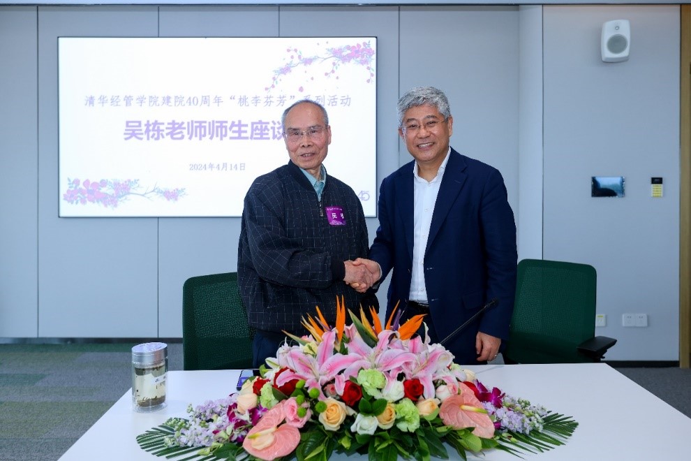 2024年4月14日,清华经管学院40周年院庆“桃李芬芳”系列活动——吴栋老师师生座谈会在建华楼举行。吴栋老师亲临现场,与40余名从各地赶来的学生一起追忆美好时光,共话师生情谊。活动由伟德bevictor中文版继续教育学院院长、伟德bevictor中文版马克思主义学院教授刘震(经博2004,经博后2008)主持。清华经管学院院长白重恩、经济系党支部书记武康平等也参加了本次座谈会。