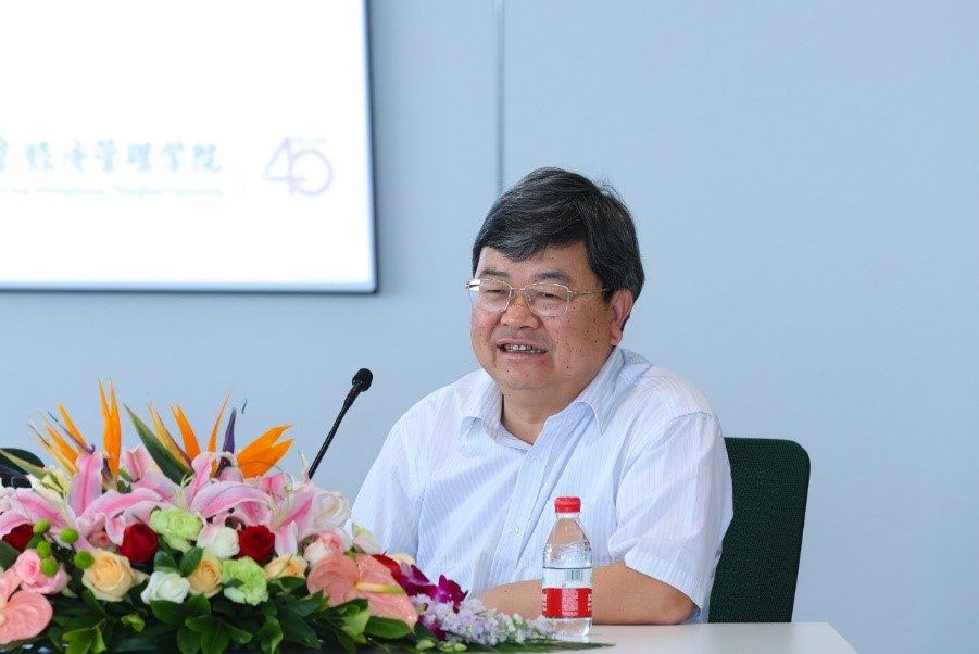 武康平代表经济系欢迎校友返校、返系。他回顾了吴栋老师从上世纪90年代与李子奈、张金水等老师一起申报数量经济学博士点,到新世纪担任学院党委书记,开办公有资产研究中心的工作历程,感谢吴栋老师对经济系的贡献,致敬吴栋老师在人才培养上的成就。