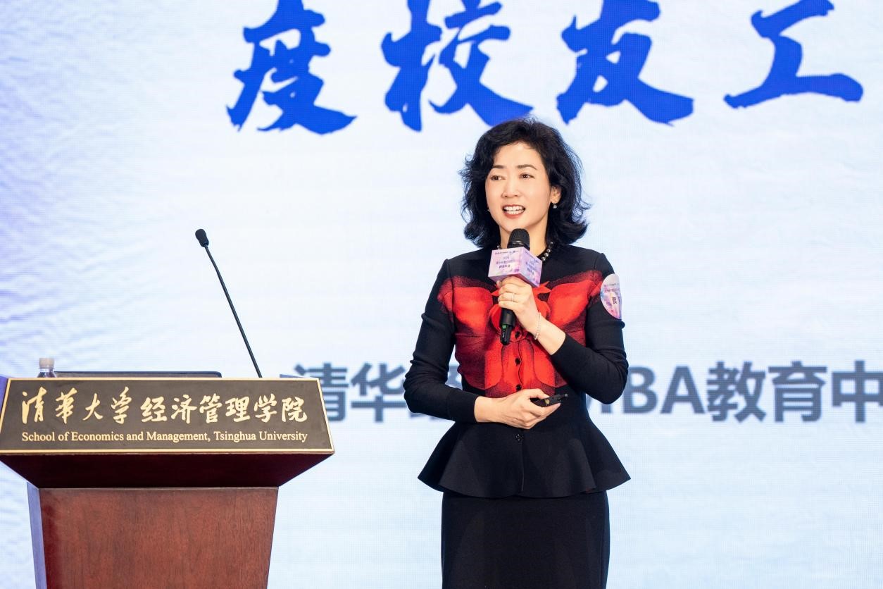 贾莉介绍了EMBA教育中心过去一年取得的成绩,带领大家回顾了中心年度大事件、校友发展工作及成果、今年校友会新规则的调整。贾莉表示,校友会工作在2024年应该坚持三个“心”:不忘初心,坚守职责使命,对校友工作怀有“奉献之心”;把握重心,践行企业家精神,对国家和企业怀有“赤子之心”;勠力同心,无条件乐观进取,对未来怀有“少年之心”。最后,她对各位会长和理事在过去对学院和中心的关心和支持,以及对校友工作的倾情付出表示感谢,希望学院和清华经管EMBA项目在大家的共同努力下会越来越好。