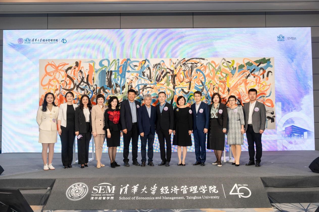 在献礼环节,由老师们和EMBA校友共同描绘的“清华五百笔”画作亮相,这是通过艺术家邬建安老师的艺术创作组合成的一幅当代艺术作品,作品汇聚所有EMBA学子的祝福,表达对学院40周年院庆的祝福。