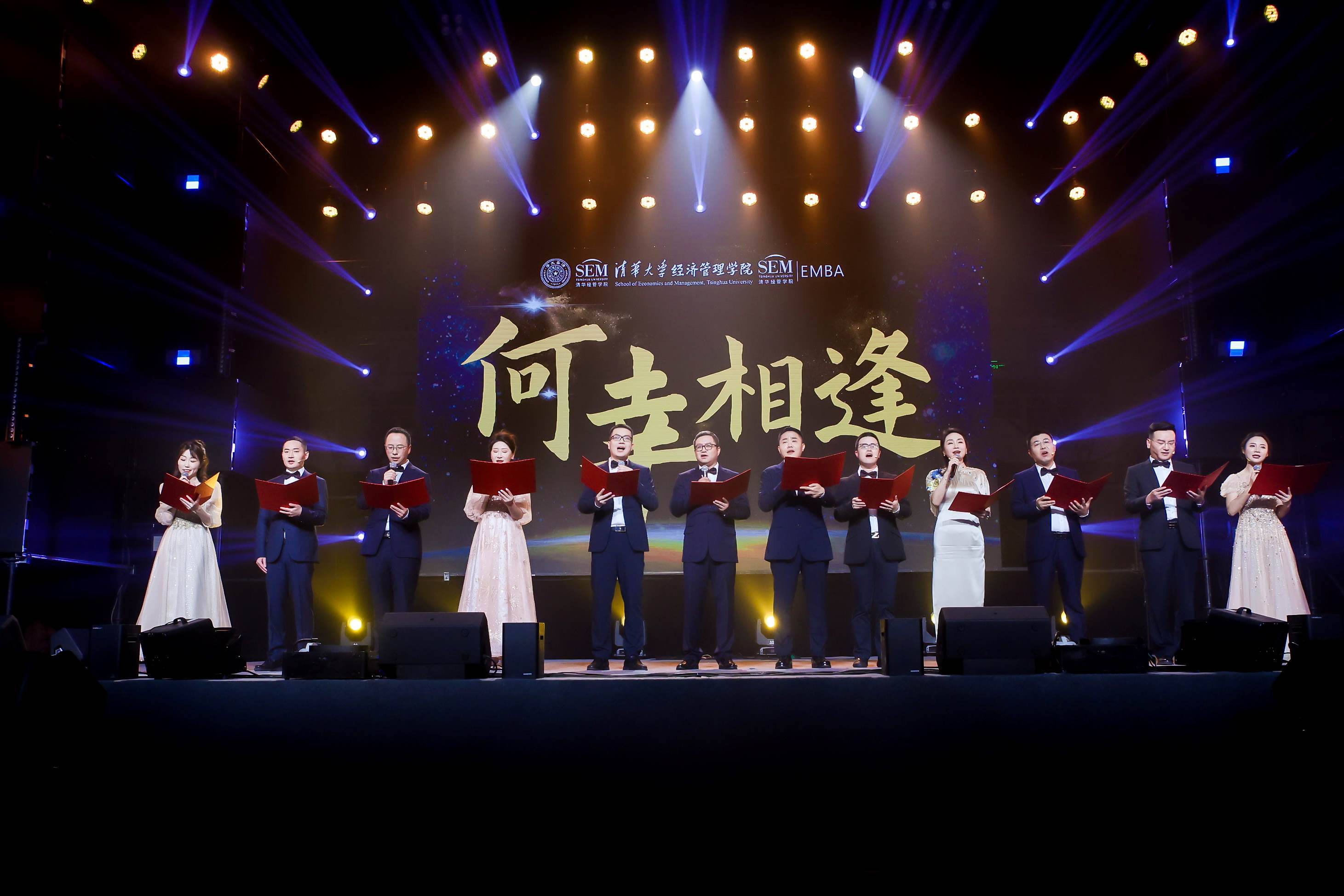 蔚林巍、张宏两位老师带来三首新疆民歌,精湛的唱功让观众们感受到少数民族音乐艺术的魅力;EMBA的《卜卦·何幸相逢》将传统的中国音乐元素以现代的演绎手法展现出来;《谁能代表新时代MBA》则让我们看到了MBA同学们的艺术创造力,歌唱、相声、舞龙、舞蹈……多样的形式令人大开眼界。