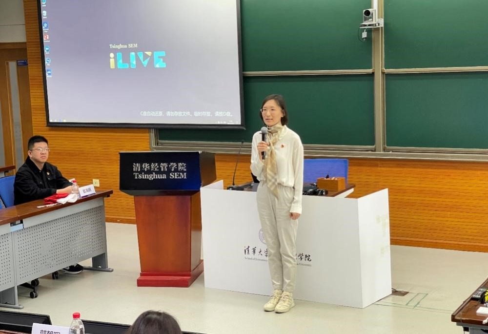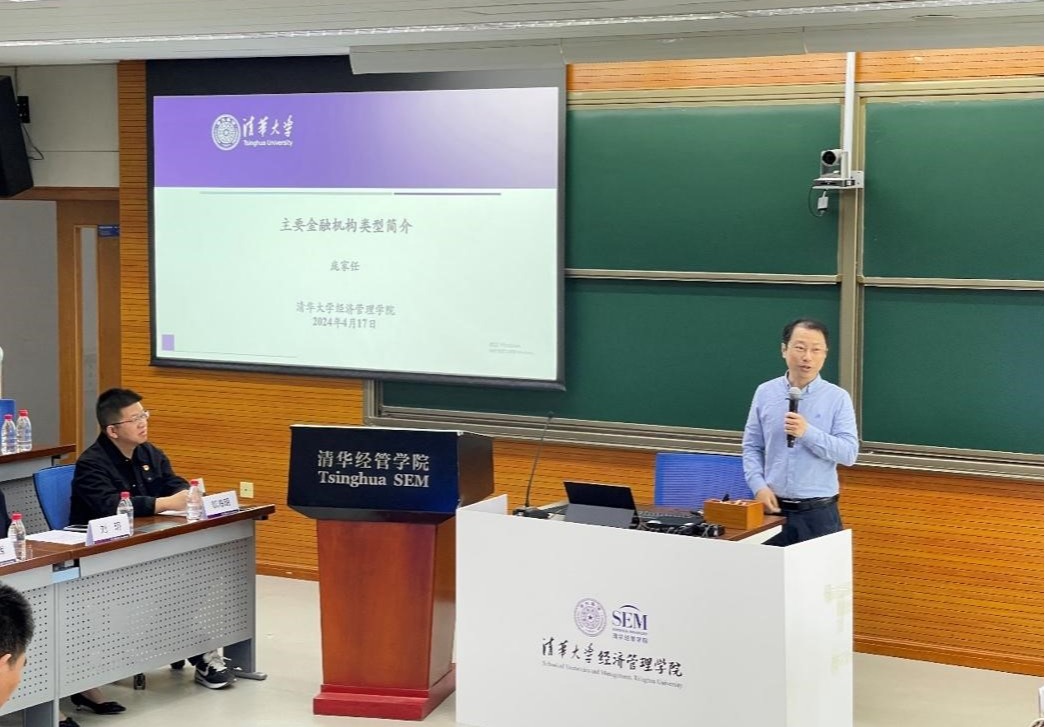 随后,清华经管学院金融系副教授庞家任和第二检察部主任魏雪分别以“金融实务”和“金融安全”为主题进行分享。庞家任以生动的案例和实际的数据分析,介绍了各种金融机构的概况和特点,及其运作模式和核心业务。庞家任表示,金融发展日新月异,深入了解金融机构的运作原理和市场特点,对于未来的发展至关重要。希望通过这样的课堂让更多人了解到金融行业的精彩与复杂,体会金融安全的重要性,并在实践中不断探索、学习和成长。魏雪针对当前金融领域面临的安全挑战进行了深入分析,结合西城区检察院的工作实务,对重点威胁领域与违法犯罪事项进行了介绍,并对金融检察的具体内容与重要性展开阐述。针对防范电信网络诈骗,魏雪提醒大家切不可掉以轻心,并分享了一系列实用的防范措施和应对策略。从魏雪的分享中,在场同学加深了对金融安全检察工作的认知,学会从自我与身边做起,提高安全意识。
