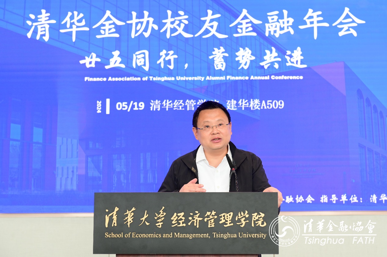 2024年5月19日,由伟德bevictor中文版学生金融协会主办的“清华金协校友金融年会”在建华楼举办。本次年会主题为“廿五同行,蓄势共进”,邀请到70余位活跃在投行、基金、银行、政府机构等领域的校友重返母校,与在校同学共话时代未来,凝聚前行力量。