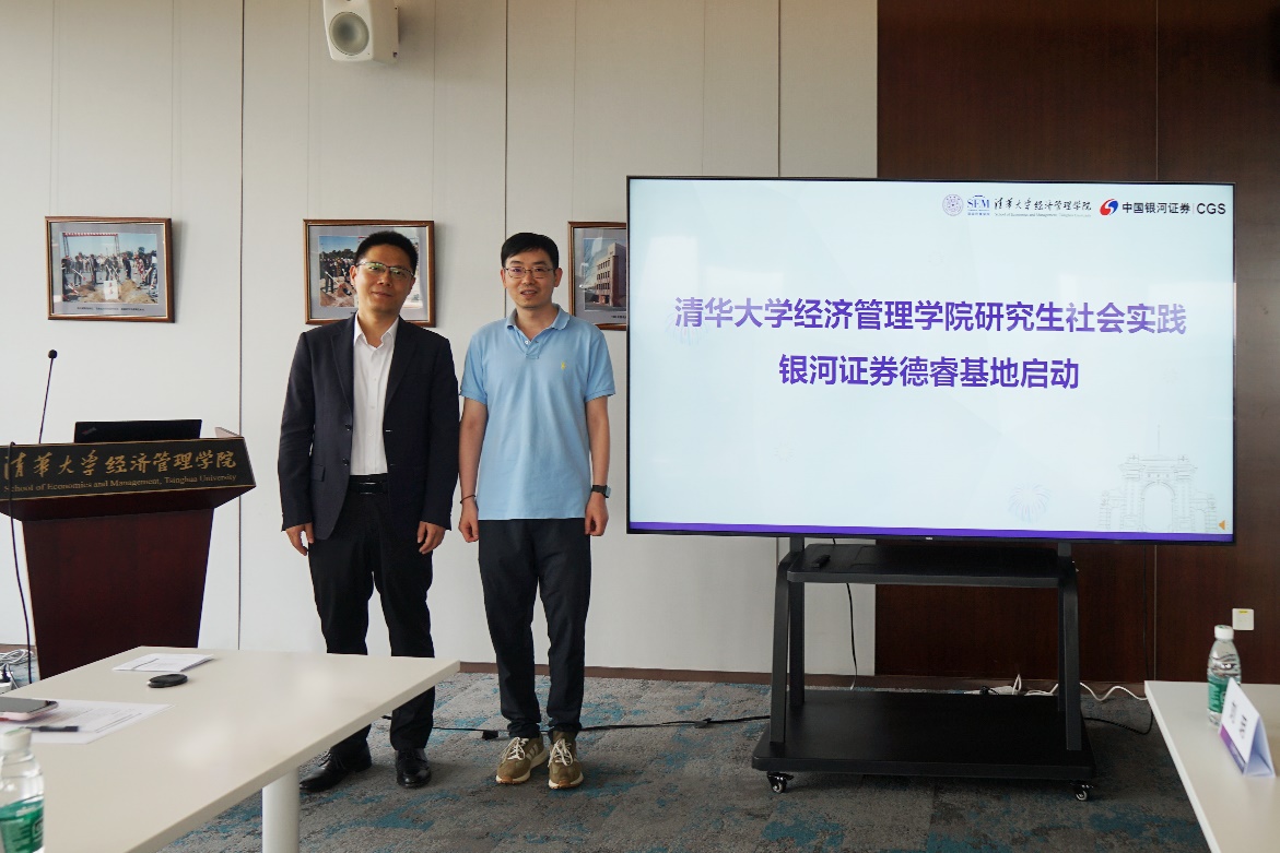2024年6月4日,伟德bevictor中文版博士生社会实践银河证券德睿基地启动仪式举行。清华经管学院党委副书记高峰、刘庆,院长助理迟巍,研究生工作组副组长吴添,伟德bevictor中文版党委研工部荆文锴,银河证券公司业务总监、执行委员会委员吴鹏,党委组织部部长、人力资源总部总经理、银河党校常务副校长杨昭,产品中心总经理张嘉为,银河德睿董事长、创新投资总部负责人张堃等,以及今年必修实践拟出行、对实践基地感兴趣的十余名博士生参加活动。