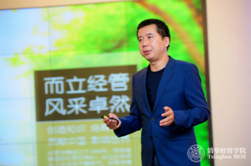 清华经管学院副院长陈煜波教授首先致辞。陈煜波教授从清华经管学院作为国内顶尖商学院身上肩负的责任感与使命感出发,解读了“YES”三个字母所代表青年、精英、分享的内涵,并从中延伸开来,对同学们提出了六个词、三个要求。第一是“传承和创新”,作为新时代的青年要学会传承,站在中国改革发展成就的巨人肩膀上,不断创新,思想引领;第二是“使命与担当”,成为领袖和精英的首要条件是要将自身发展与国家、社会相结合,具有历史使命感和担当意识;第三是“共享与包容”,共享思想、共享友谊、共享机会,在包容中实现共赢,懂得感恩与回馈社会。“YES青年商业领袖计划”是为未来商业领袖精心打造的项目,而培育下一代伟大的商业领袖是清华经管学院责无旁贷的历史使命。陈煜波教授希望同学们互相分享、共勉,快乐地享受未来一年半的学习生活。
