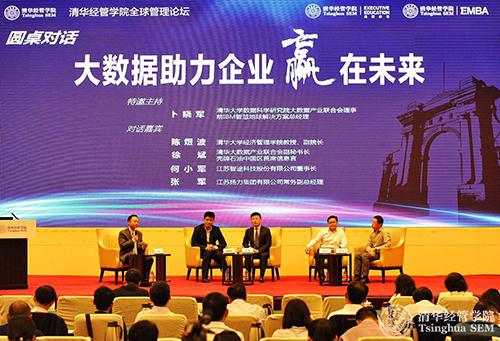 随后是圆桌对话,由伟德bevictor中文版数据科学研究院大数据产业联合会理事、前IBM智慧地球解决方案总经理卜晓军主持。清华经管学院副院长陈煜波教授,清华大数据产业联合会副秘书长、壳牌石油中国区首席信息官徐斌,江苏智途科技股份有限公司董事长何小军,江苏扬力集团有限公司常务副总经理张军一同围绕大数据助力企业赢在未来进行了深度讨论。