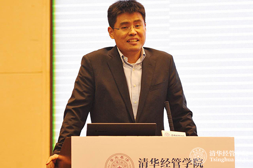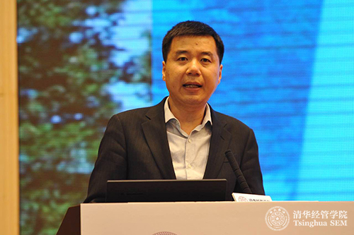 清华经管学院副院长陈煜波教授在清华经管学院全球管理论坛(扬州)峰会上作《大数据时代的商业创新与中国企业转型升级》主旨演讲