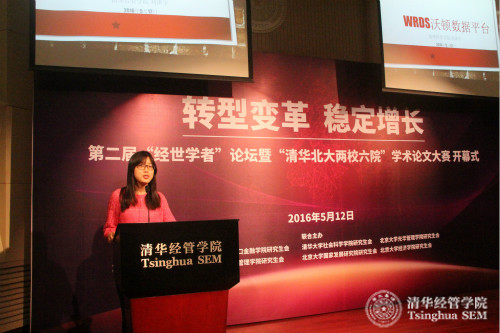 2016年5月12日,主题为“转型变革,稳定增长”的第二届“经世学者”论坛暨“清华北大两校六院”学术论文大赛在清华经管学院、五道口金融学院举行。