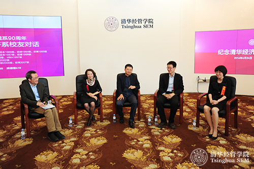 清华经管学院经济系校友对话(左起:钟笑寒、金荦、王济武、宋长城、张琼)