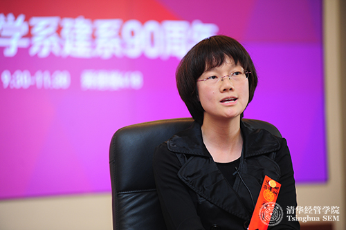 金荦表示她在经管的学业和实习对她之后的职业发展助力很大。她说,“当时我们作为学生,对于老师在课程设计或是给予一些任务时很不理解,要随着自己职业生涯走到好远才能够理解,确实感谢当时系里对我们这些学生的培养”。王济武感慨于学院的发展壮大以及李子奈等老师当年对自己的用心培养,“老师和我们的距离特别近,我们能基本做到经管学院的老师都认识,这种很亲密的师生情谊的感觉,我相信在清华是非常独特的”。宋长城说自己是学院不分专业的大平台招生和特聘教授两项举措的直接受益者。张琼感叹于清华严谨的学风、谦虚的心态和务实的精神。
