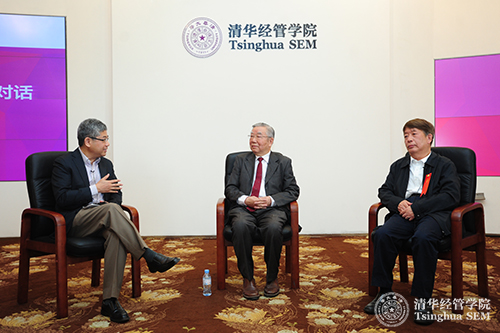 随后展开的是“清华经管学院经济系历任系主任对话”环节,对话聚焦于学院经济系31年的发展,由现任系主任白重恩教授主持。董新保教授、李子奈教授和白重恩教授三位系主任,分别分享了他们任期内经济系的发展。