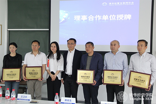 活动最后,朱岩教授、王海涛等为清华经管学院互联网协会理事合作单位授牌。