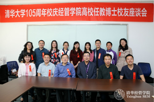 目前,毕业后在国内外高校任教的清华经管学院博士生有200余人。此次,有20余位在国内高校任教的校友参加了座谈会。他们中既有刚进入高校的新人,也有工作多年的资深教师。各校友就教学、科研、基金申请、职业发展等方面进行了交流,并就可能的合作空间进行了讨论。