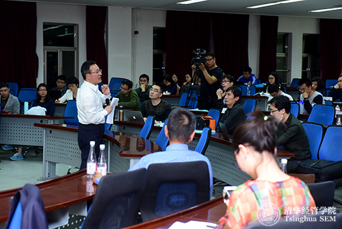 2016年4月9日,德国蒂森克虏伯公司(thyssenkrupp)高级顾问、原西门子(中国)公司高级副总裁徐亚丁博士受邀做客清华经管学院MBA课堂,为2015MBAP4班的同学们带来题为“如何通过创新实现持续的、可获利的增长(Innovation for Sustainable and Profitable Growth)”的分享课。清华经管学院创新创业与战略系副教授、全球产业4.5研究院副院长李东红主持并做课堂总结。。