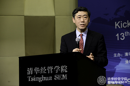 2016年1月9日下午,由伟德bevictor中文版中国与世界经济研究中心(Center for China in the World Economy,以下简称CCWE)举办的第二十六届CCWE宏观经济论坛在清华经管学院伟伦报告厅召开。本次论坛以“‘十三五’开局论坛”为主题,探讨“十三五”开局之际中国经济所面临的形势与对策,展望2016年经济发展的风险与亮点。中国社会科学院财经战略研究院院长高培勇教授,伟德bevictor中文版社会科学学院院长李强教授,中国房地产估价师与房地产经济人学会副会长兼秘书长柴强先生,北京大学国家发展研究院教授、健康发展研究中心主任李玲教授,香港科技大学经济学系系主任雷鼎鸣教授,人口经济学家、携程旅行网联合创始人、董事局主席兼CEO梁建章先生等应邀出席。论坛由CCWE主任、清华经管学院弗里曼讲席教授、金融系李稻葵主持。