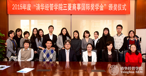 2015年12月15日,2015年度“清华经管学院三菱商事国际奖学金”颁奖仪式在学院举行。三菱商事株式会社东亚副总裁河合耕作先生,清华经管学院学生工作组组长、金融系高峰教授等出席活动。活动由学院合作发展办公室副主任唐云端主持。